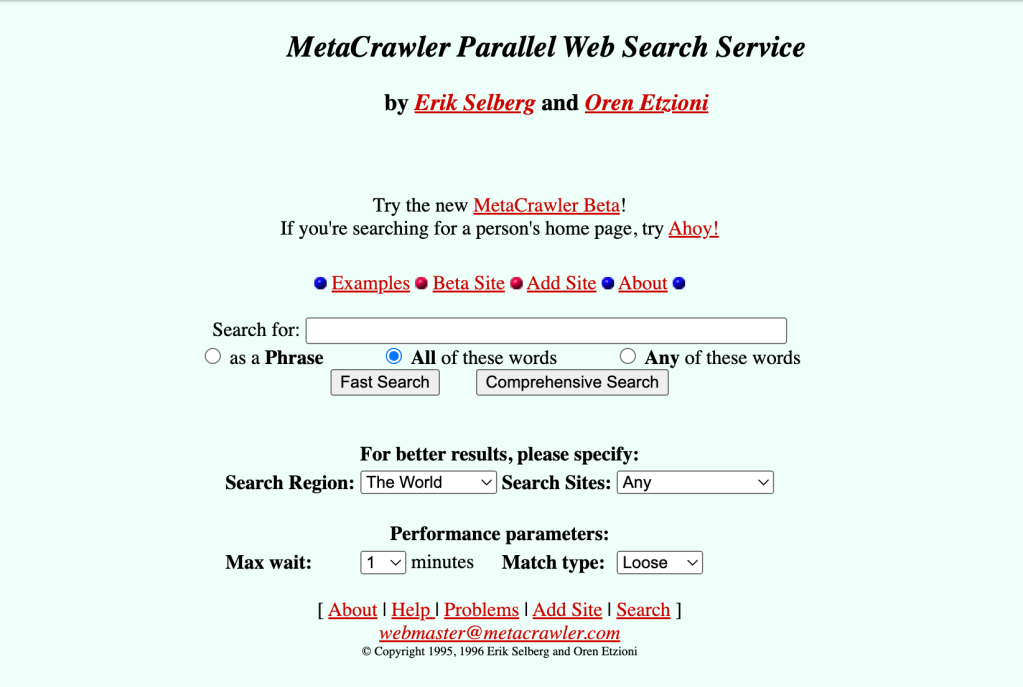 MetaCrawler 1994 and The Meta Tag