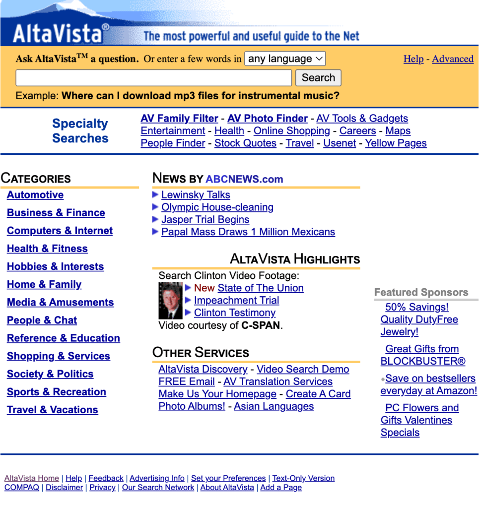 The landscape of search engines had seen dramatic changes as well. When Google launched in 1998, its founders Larry Page and Sergey Brin initially struggled to gain traction, even offering to sell Google to AltaVista for $1 million so they could return to their studies at Stanford—an offer that AltaVista declined.